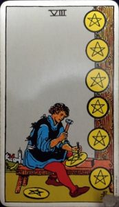 おはようございます。1/11にひいたタロットカードは『ペンタクル8』の正位置です。