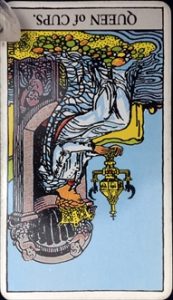 おはようございます。8/14にひいたタロットカードは『カップクイーン』の逆位置です。