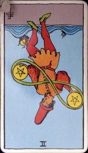 おはようございます。9/8にひいたタロットカードは『ペンタクル2』の逆位置です。
