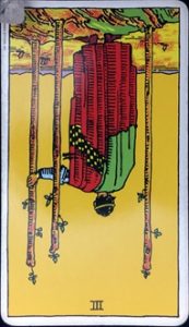 今日『ワンド3』の逆位置をひいた、『ワンド3』の逆位置が気になったあなたは『次にどうするかを決められない。焦らず出来る事をやってみる』と良いでしょう。