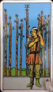 4/24にひいたタロットカードは『ワンド9』の正位置です。