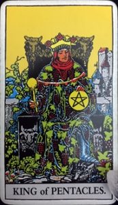 おはようございます。9/11にひいたタロットカードは『ペンタクルキング』の正位置です。